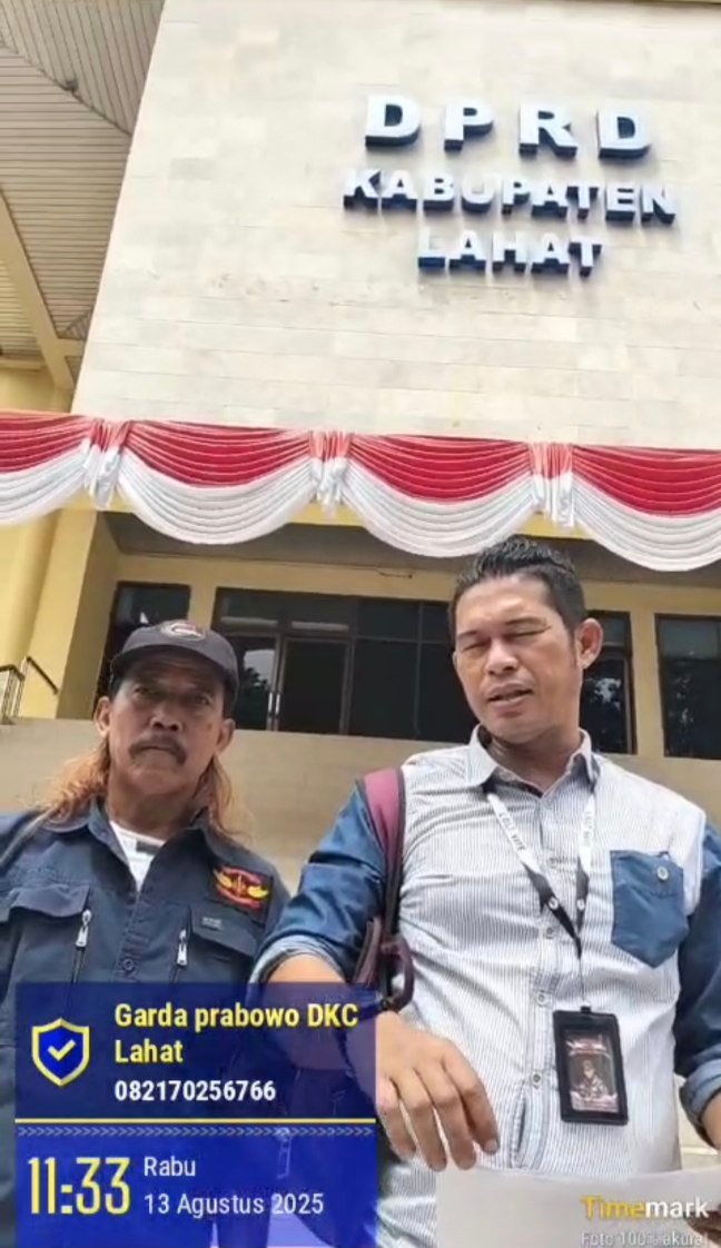 Lahat — Dewan Pimpinan Cabang Garda Prabowo Kabupaten Lahat yang diketuai Suratman mendatangi Kantor DPRD Kabupaten Lahat pada Rabu (13/08/2025) untuk meminta klarifikasi resmi kepada*Sekretaris Dewan (Sekwan) terkait penggunaan anggaran DPRD dari tahun 2023 hingga 2025, khususnya pada pos pengadaan barang/jasa yang dinilai penuh tanda tanya.