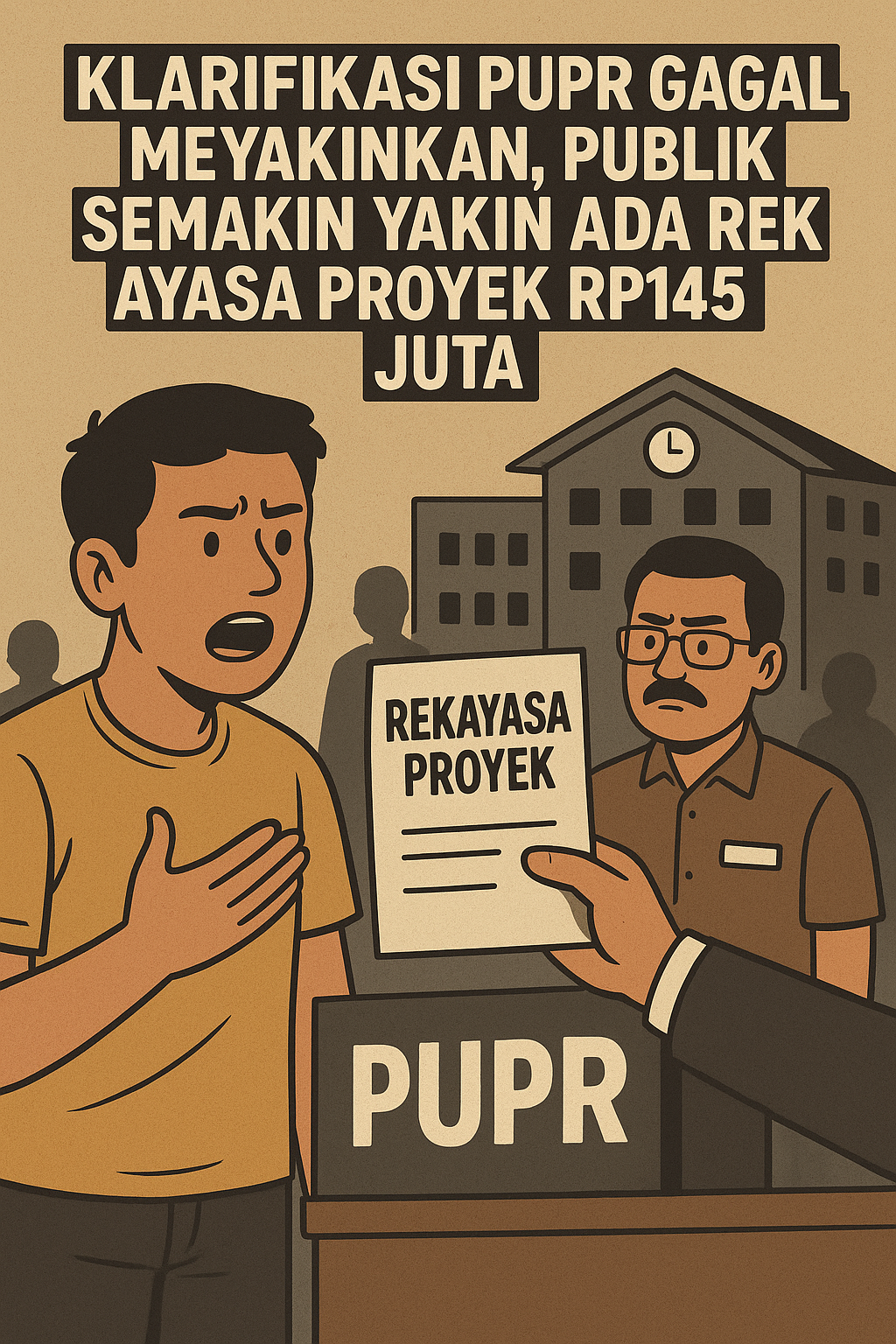 “Kalau Rp145 juta saja sudah penuh kejanggalan, bagaimana dengan proyek miliaran? Jangan main-main dengan uang rakyat. Aparat hukum harus segera turun tangan,” tegasnya.
